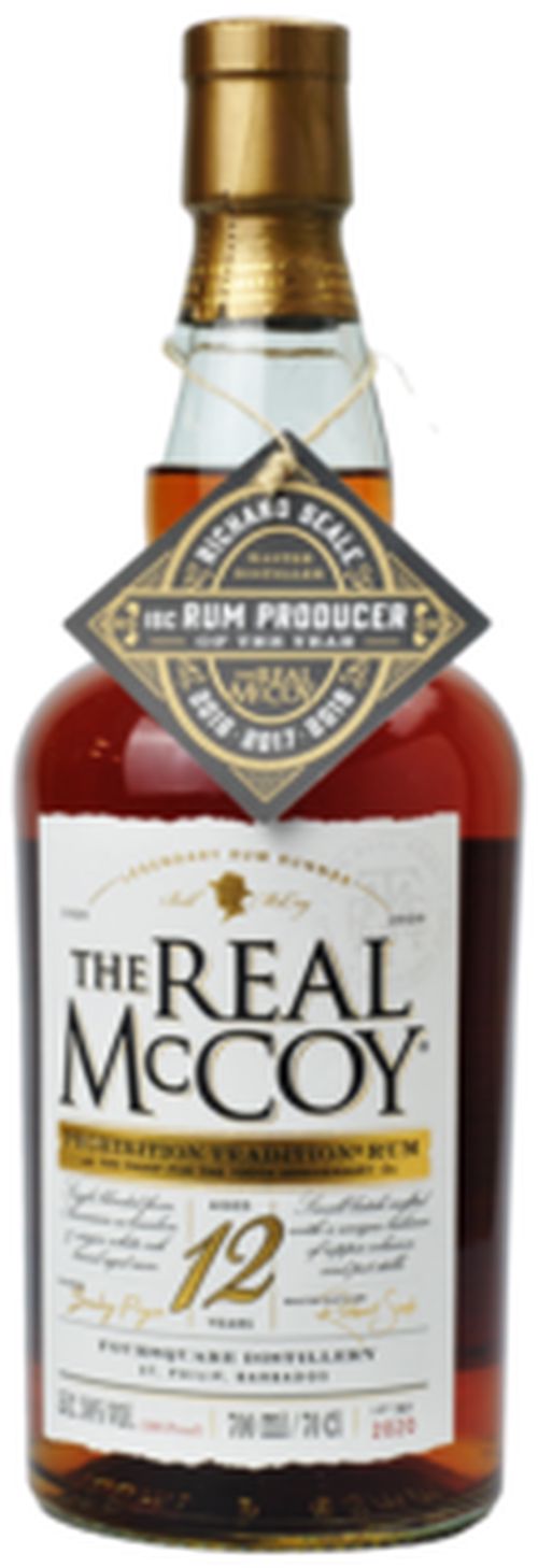 Real McCoy® Rum je založený na príbehu Billa McCoya, priekopníka rumu éry prohibície. V januári 1920 McCoy ako prvý naplnil čln alkoholom v Karibiku, plavil sa ním až do New Yorku a legálne pôsobil ako plávajúci obchod s alkoholom tri míle od brehu. McCoy dával pozor, aby vždy zostal mimo hranice troch míľ, čo boli medzinárodné vody v prvých dňoch prohibície USA. McCoy sa preslávil tým, že alkohol nikdy nefalšoval. Zatiaľ, čo niektorí výrobcovia s rumom by riedili alkohol chemikáliami ako terpentín, drevný lieh a slivkový džús, McCoy to nikdy neurobil. Zlé výrobky dostali prezývku „Booze“, „Hooch“ a „Rot Gut“, zatiaľ čo kvalitné liehoviny McCoy boli známe ako „The Real McCoy“. Mnohonásobne ocenená kolekcia rumu je vyrobená na počesť McCoya pomocou jeho Prohibition Tradition®. Rum je úplne nefalšovaný – neobsahuje pridané sladidlá, arómy, parfumy ani chemické stabilizátory. A používa sa iba najjemnejšia melasa a čistá pramenitá voda z Barbadosu. The Real McCoy 12-ročný 100 Proof Rum The Real McCoy 12 YO 100 Proof je vyrobený v limitovanom počte, a to iba 6000 fliaš. Táto limitovaná edícia vznikla na počesť stého výročia prvého predaja alkoholu The Real McCoy – preto ,,100 Proof", čo znamená, že má obsah alkoholu 50 %. A tak túto edíciu nazývame ,,Prohibition Tradition". Tento single blend sa skladá výlučne z rumov, ktoré zreli dvanásť rokov v sudoch po americkom bourbone a v nových sudoch z bieleho dubu. Rum má elegantný a vyzretý charakter, je delikátny a komplexný. Vo vôni cítiť tabak, spálený dub, kôstkové ovocie a zemité tóny. V chuti dominuje výrazné medové drevo, korenená vanilka a karamelizovaný muškátový oriešok jemne dopĺňa štipka čierneho korenia. Záver je okrúhly, jemný a dlhý.