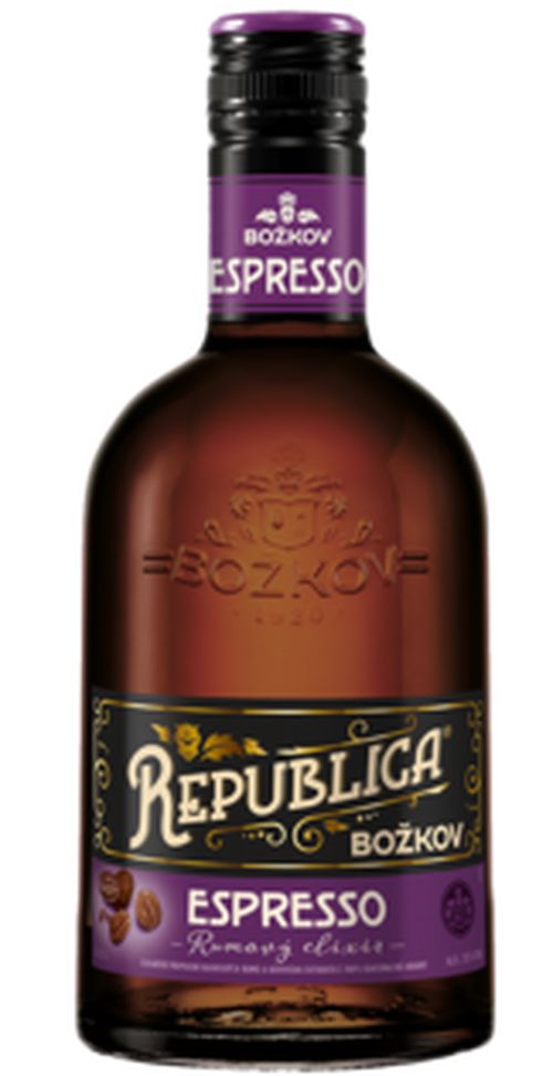 Rumy a tuzemáky majú v Česku skrátka najradšej. Od tradičných tuzemských, ktorých milovali už naši predkovia, až po pravé rumy, ktoré v posledných rokoch zažívajú obrovský boom. Hoci sa božkovský „tuzemák“ stretával s množstvom zmien, nikdy sa nedotkli receptúry alebo kvality. Stále sa tak vyrába z najjemnejšieho melasového liehu, mäkkej plzenskej vody, cukrového sirupu, špeciálneho karamelu a vanilkovej arómy. Vďaka tomu získal nádherne zlatistú farbu a prirodzenú chuť. Božkov rum sa vyrába z cukrovej trstiny a dosladzuje sa trstinovým cukrom. Veľmi populárne sú rumy „blendované“ z viacerých oblastí alebo rôzne starené, u takýchto môžeme v chuti cítiť tóny vanilky, sušeného ovocia, orieškov alebo napríklad čerešní. Prvá republika je obdobím noblesy a elegancie, poctivosti a hrdosti na remeselný fortel a um. Rad rumov Božkov Republica je oslavou týchto prvorepublikových hodnôt. Lahodné trstinové rumy Božkov Republica sú plné chuti toho najlepšieho z karibských ostrovov, či už samotné alebo miešané, najlepšie si ich vychutnáte s tými, na ktorých vám záleží. Božkov Republica Espresso Guatemalská káva Arabika, typická jemnejšou, ovocnejšou, intenzívnejšou a plnou chuťou, spoločne s sladkastými až 8-ročnými karabskými rumami, v ktorých vynikajú tóny vanilky, sušeného exotického ovocia a orieškov, prináša do rumového sveta výnimočný chuťový zážitok. Božkov Republica Espresso je charakteristická vôňou a chuťovými tónmi čerstvo pripravenej kávy Espresso doplnenými o orechovo hnedú farbu.